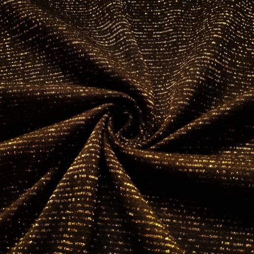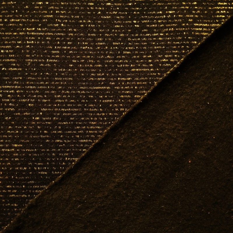 Si vous cherchez un tissu qui allie élégance et fonctionnalité, ce molleton noir à rayures dorées est fait pour vous. Osez créer avec style et confort !